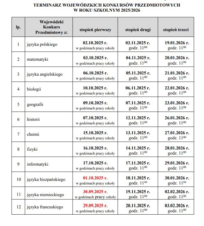 Informacje dotyczące organizacji Wojewódzkich Konkursów Przedmiotowych